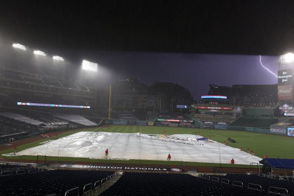 В 3-тия ининг Аарън Джъдж вкара трета точка за нюйоркчани с двоен хит, а в 5-ия Стантън оформи крайния резултат с единичен хит и завърши откриващата вечер с 3 RBI. В началото на 6-ия над игрището се изсипа порой и след почти 2-часово прекъсване съдиите обявиха преждевременен край на двубоя.