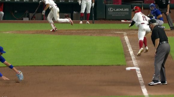 При ТВ повторенията обаче се видя, че миг преди да влезе в ръкавицата на третия бейзмен, топката тупва на земята. Това остана незабелязано от съдийския екип, а такива ситуации не подлежат на оспорване чрез системата за видео проверка.