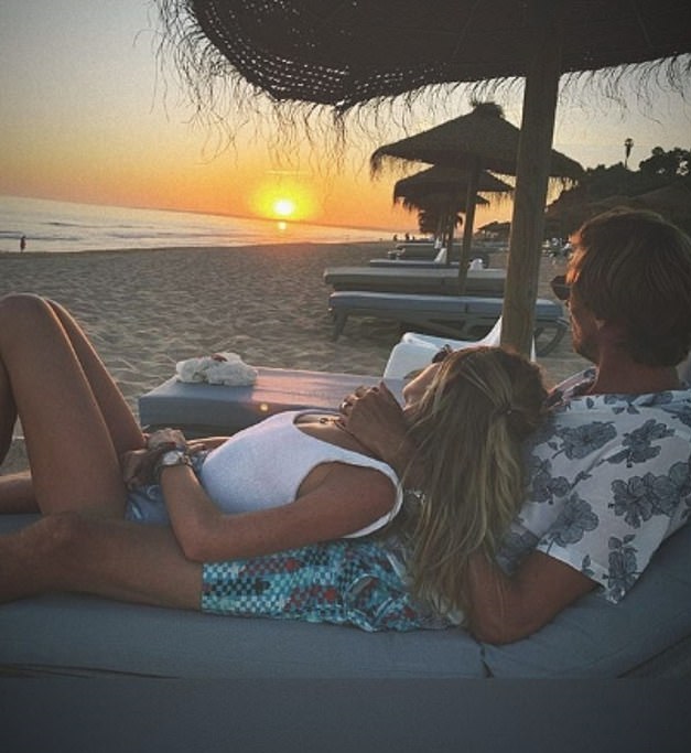 Една от снимките обаче се превърна в истински хит в социалните мрежи, показвайки романтичен момент от ваканцията на красавицата и бившия футболист. Облечена в бял бански Аби е опряла глава на гърдите на Питър, докато наблюдават красивия залез.