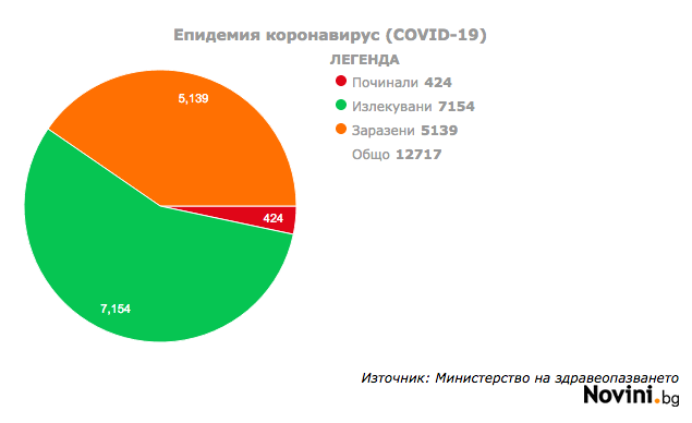 От началото на пандемията досега потвърдените случаи на коронавирус са 12 717. Активните са 5139.