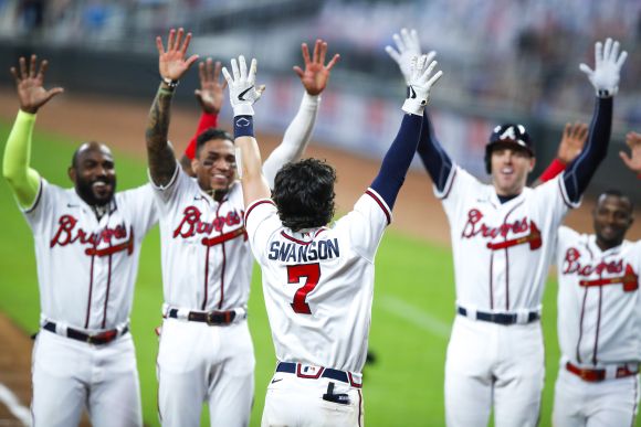 Атланта влезе във финалното си нападение с пасив от 3 точки, след като в отварянето на последния ининг Хуан Сото беше ударил соло хоумрън за допълнително успокоение на гостите. Само че скоро те бяха попарени от двоен изстрел на Адам Дювал и довършени с нов двоен хоумрън – на Денсби Суонсън.