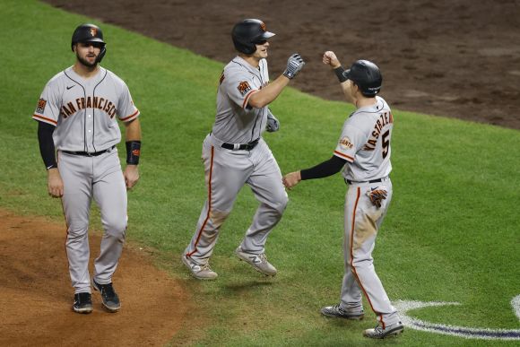 Трима играчи на "гигантите" пък отвориха нова страница в историята на Висшата лига. Алекс Дикърсън, Донован Солано и Брандън Крофърд вкараха по 6 точки всеки и се превърнаха в първото трио съотборници с по 6 RBI в един мач, откакто този статистически показател е въведен официално през 1920 г.