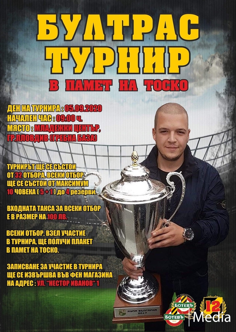 На 5-и септември (събота), между 9:00 и 17:00ч. в Младежки център (Гребна база - Пловдив), ще се състои футболен турнир в памет на Тоско Бозаджийски. Освен футболната надпревара, в която ще вземат участие 32 отбора, има организирани редица съпътстващи мероприятия, най-интересните от които ще са в периода 12:30-14:30ч.