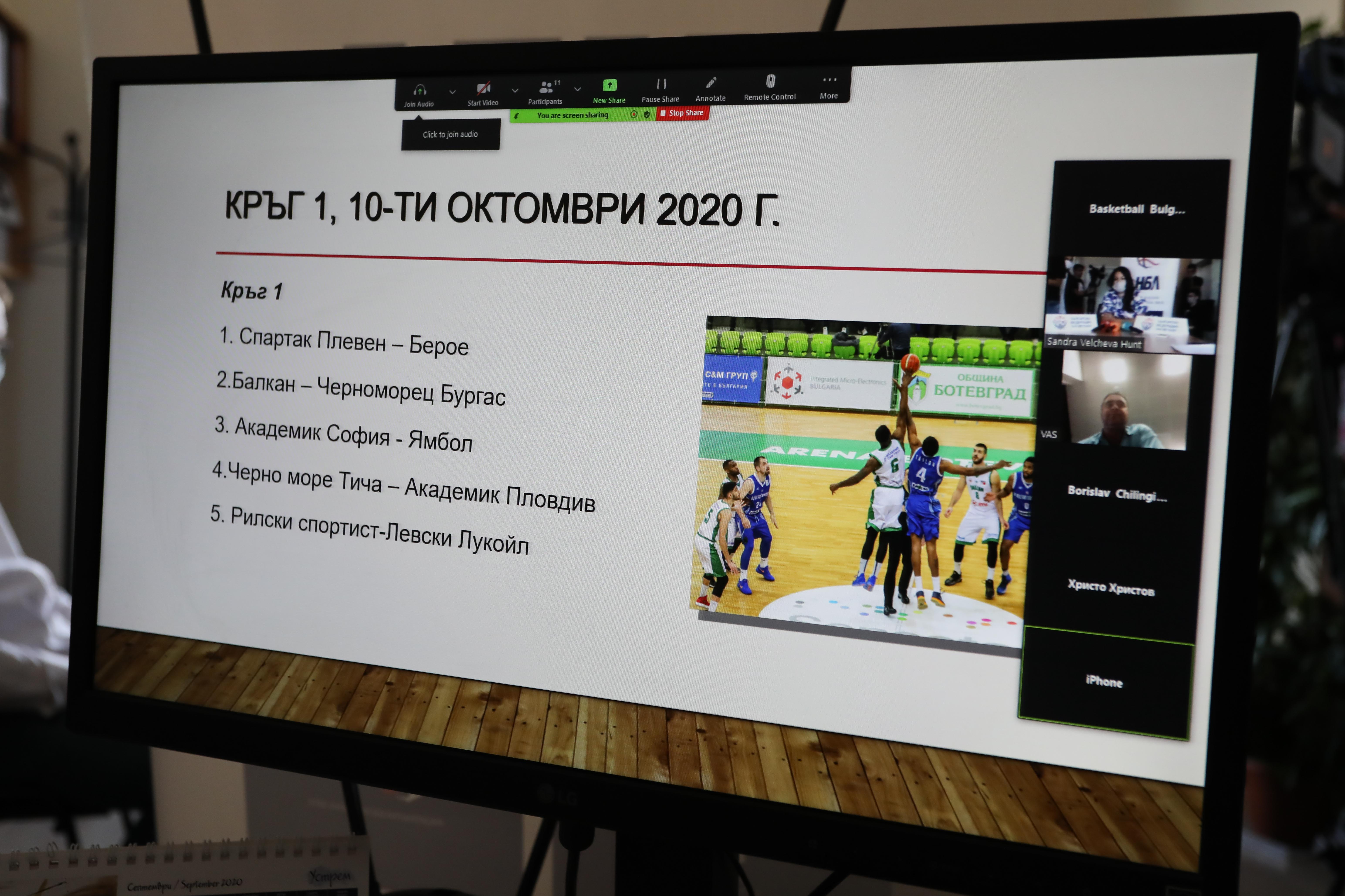Стана ясна програмата за първия кръг на Националната баскетболна лига за новия сезон 2020/21. Тегленият днес жребий, който се проведе дистанционно чрез видеоразговор в платформата Zoom, отреди дерби между Рилски спортист и Левски Лукойл още на старта на първенството.