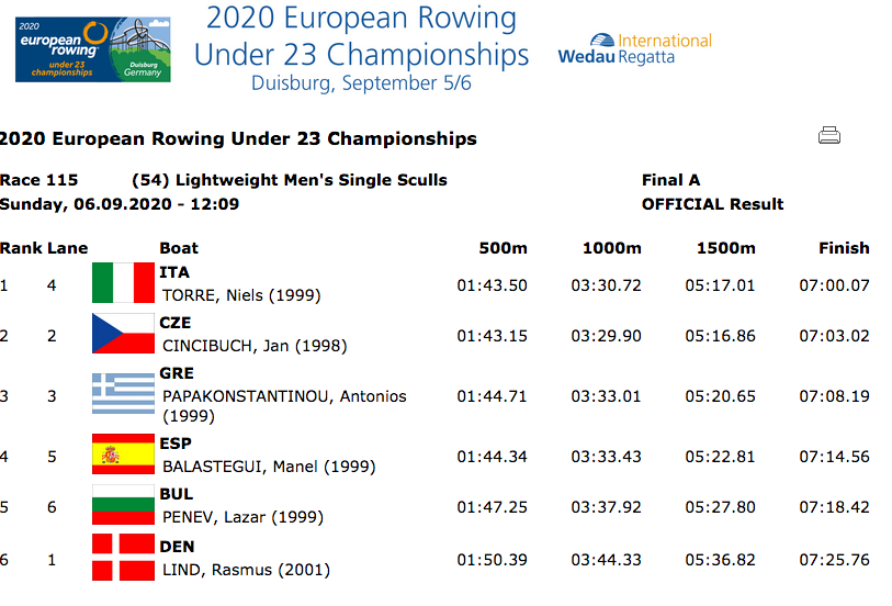 Състезателят на Гребен клуб Локомотив (Русе) Лазар Пенев записа най-доброто класиране за България на завършилото в Дуисбург Европейско първенство за младежи и девойки до 23 години.