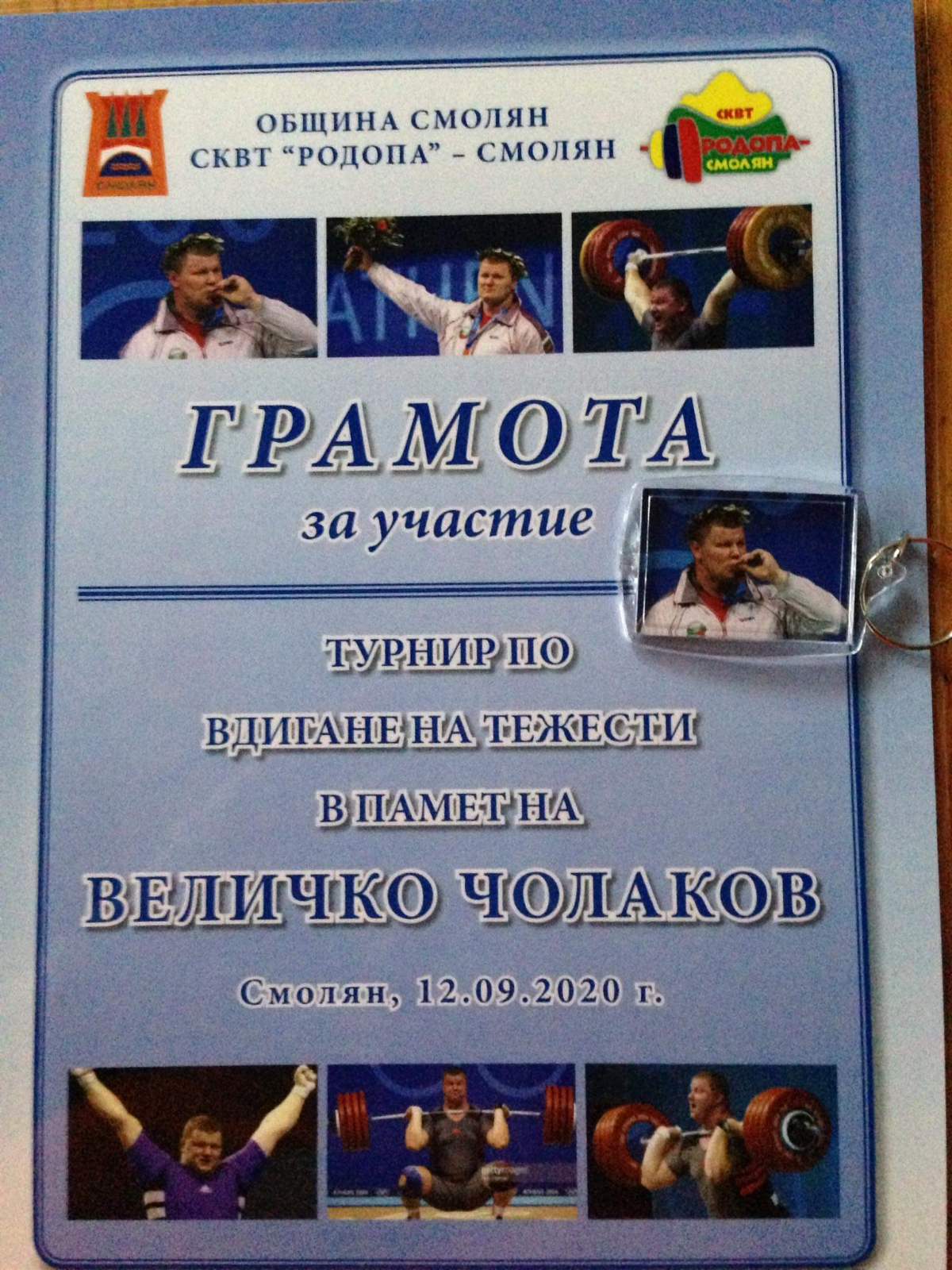 На 20 август т.г. се навършиха три години от кончината на Величко Чолаков, който бе удостоен и със званието „Почетен гражданин на Смолян“. Величко, освен спечеления бронзов медал от олимпиадата в Атина през 2004, има още сребро от световното първенство във Ванкувър 2003, злато на европейското в Киев 2004, сребро от континенталния шампионат във Владиславово 2006 г., плюс редица отличия и медали от републикански първенства, както при мъжете, така и при младежите.