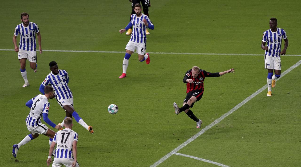 Айнтрахт (Франкфурт) постигна първата си победа за новия сезон в Бундеслигата по категоричен начин. Възпитаниците на Адолф Хютер се наложиха с 3:1 над Херта при гостуването си в Берлин от 2-ия кръг. Любопитното е, че и четирите гола в мача бяха отбелязани от играчи на гостите. Андре Силва откри резултата от дузпа в 30-ата минута, Бас Дост удвои в 37-ата, Себастиан Роде вкара третия гол в 71-ата минута, а накрая Мартин Хинтерегер си отбеляза автогол, за да направи загубата на домакините малко по-почетна.