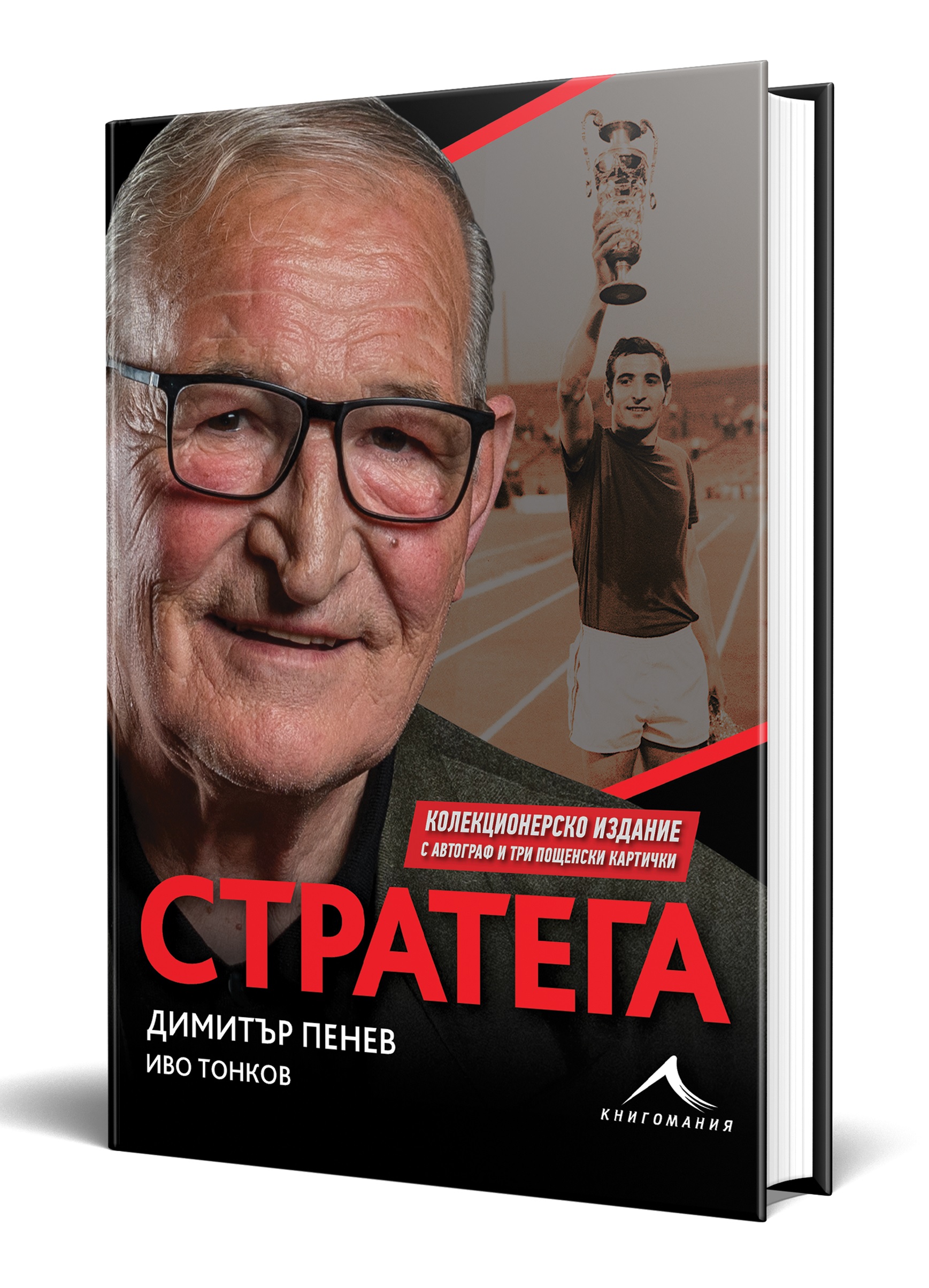 Най-легендарният футболен треньор на България – Димитър Пенев, чества 75-годишен юбилей с луксозна биографична книга в две издания. „Стратега“, както е и прякорът на легендата, е писана в съавторство с журналиста Иво Тонков, като творческият им тандем работи заедно около една година. Дизайнът на красивото томче е дело на Тодор Манолов. Луксозната цветна биография излиза с логото на Книгомания и е с твърди корици, отличава се с високото си полиграфическо качество; съдържа 268 с., включва над 200 снимки, някои от които се публикуват за първи път. Колекционерското издание, което е в лимитиран тираж, е допълнено с три пощенски картички с фотографии на Пената от различни години, както и с негов автограф. Двете издания ще се разпространяват по книжарниците от 30 септември 2020 г.