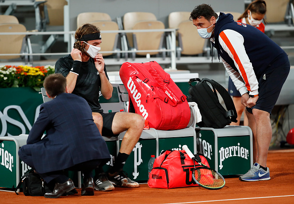 Между първия и втория сет Циципас повика физиотерапевт на корта, който му капна капки в очите.