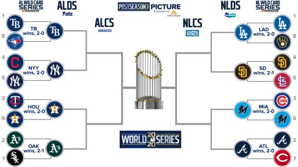 Неутралните терени ще бъдат използвани като анти-коронавирусни "балони" в сериите във формат "3 от 5", които започват тази вечер и ще продължат най-късно до 10 октомври. Финалите в двете лиги във формат "4 от 7" ще се проведат съответно в Сан Диего и Арлингтън. Предградието на Далас ще бъде домакин на първите в историята Световни серии на ничия територия.