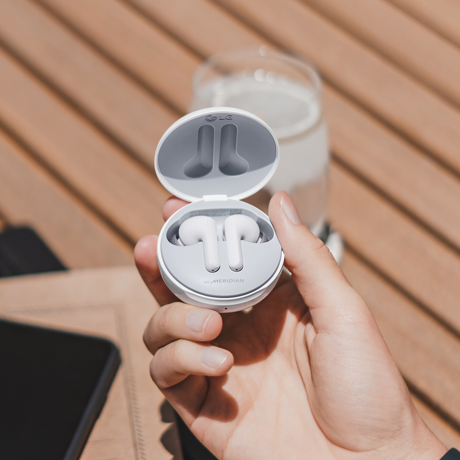 Високият клас слушалки LG Tone Free HBS-FN6 са още едно актуално предложение от LG, което впечатлява както с функциите, така и с вида си. Тези безжични Bluetooth стерео слушалки идват в малка и удобна кутийка UVnano, която осигурява безжичното им зареждане и същевременно убива 99,9% от бактериите върху тях. Необходимо е единствено да поставите кутийката със сушалките върху зареждащата подложка и само 5-минутно зареждане Ви гарантира 1 час възпроизвеждане. Първокласното възпроизвеждане на ясния и обемен звук е проектирано от престижната британска марка Meridian.