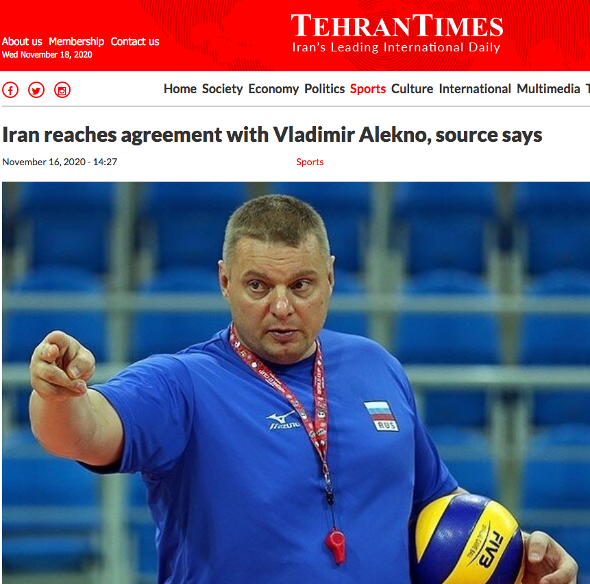 Легендарният руски специалист Владимир Алекно ще бъде новият старши треньор на мъжкия национален отбор на Иран. Новината бе съобщена от авторитетното издание Tehran Times, позовавайки се на източници от Иранската федерация по волейбол (IRIVF).