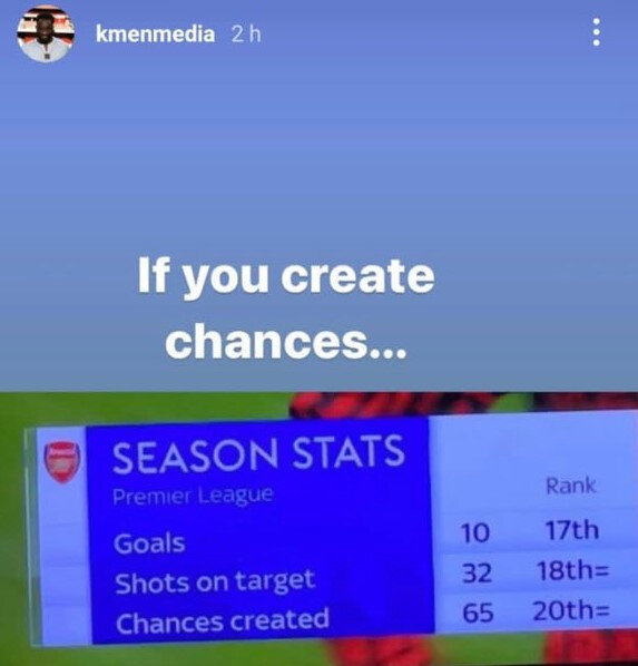 Агентът на Пиер-Емерик Обамеянг намекна, че голямата вина за липсата на голове в Арсенал не е лошата форма на габонеца, а тактиката на мениджър Микел Артета. Кваку Менса направи това, публикувайки в "Инстаграм" статистика, според която "топчиите" са на последно място в лигата по създадени положения от началото на сезона - общо 65 шанса в 11-те си мача. Агентът добави като коментар следното изречение: "Ако създаваш възможности..."