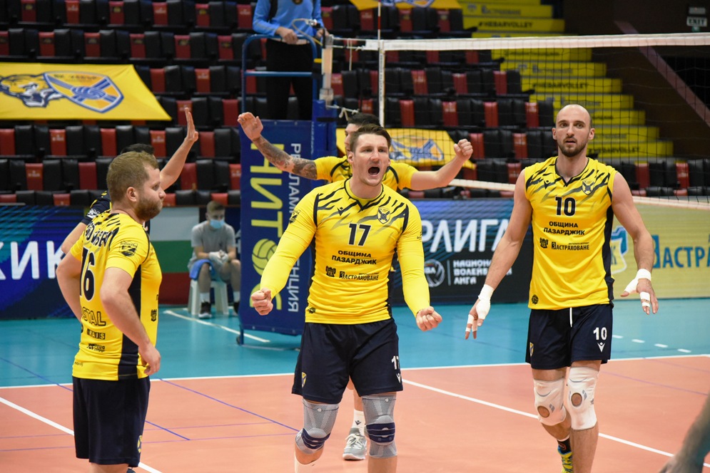 Волейболистите на Хебър (Пазарджик) излязоха начело във временното класиране в първата осмица на Суперлигата на България, след като записаха 4-а поредна побед.