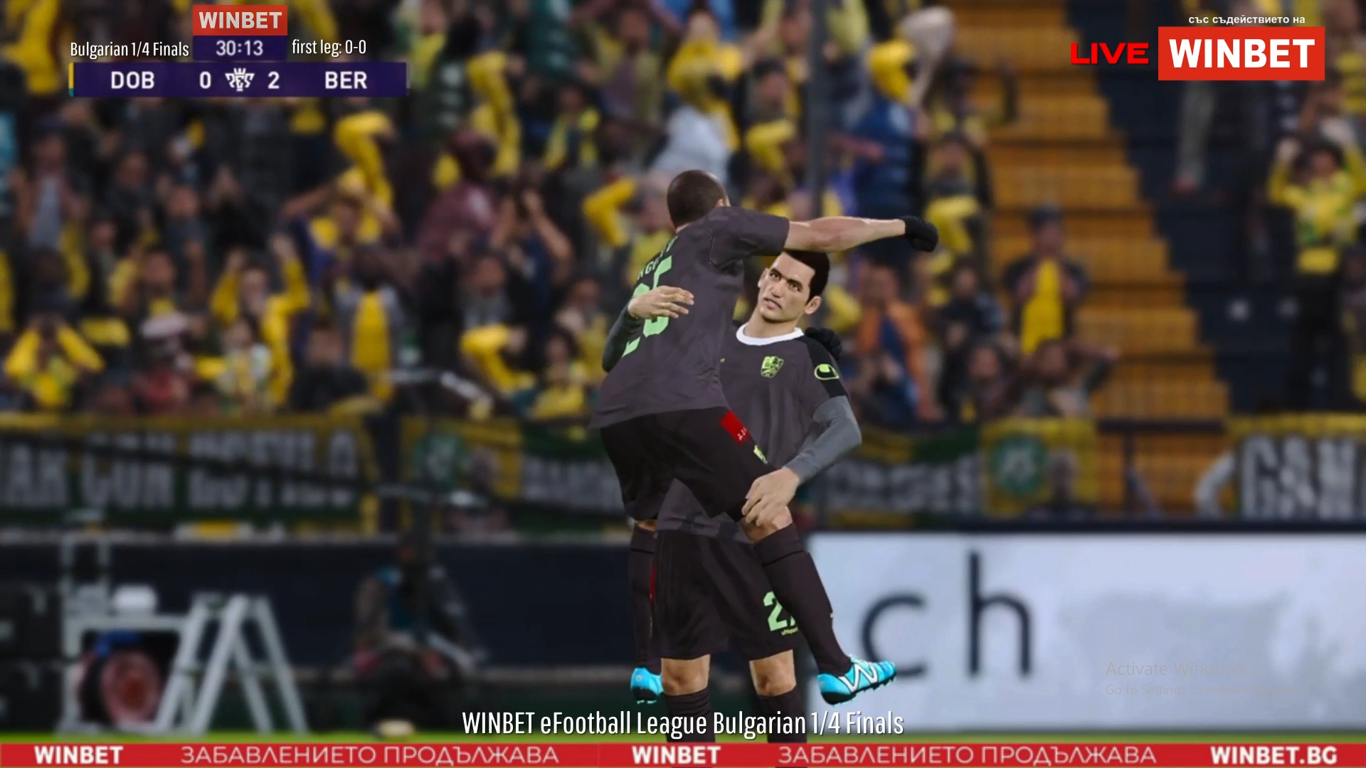 Във втория телевизионен четвъртфинален мач от WINBET e-футбол лига Добруджа на Емил Киров се изправи срещу Берое на Спас Желязков. В първия плейофен двубой помежду си двамата съперници завършиха 0:0 и на практика втората среща трябваше да определи съперника на ретро Левски в полуфиналите. Старозагорският тим поведе през първото полувреме след попадения на Макута (18 мин.) и Маринов (31 мин.), но Добруджа успя да обърне напълно резултата през втората част чрез попадение на Почански (54 мин.) и хеттрик на Карадайъ (61, 74, 78 мин.). Така за следващата фаза на турнира се класира Емил Киров с тима на Добруджа.