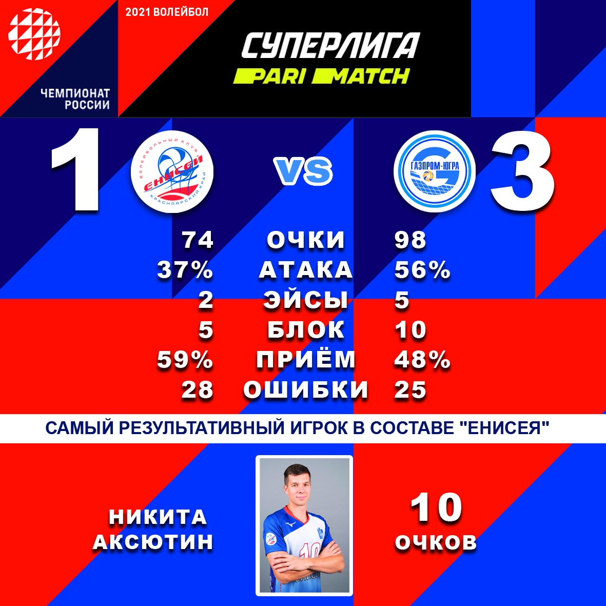 ЕНИСЕЙ (КРАСНОЯРСК) – ГАЗПРОМ-ЮГРА (СУРГУТ) 1:3 (25:23, 15:25, 19:25, 15:25)