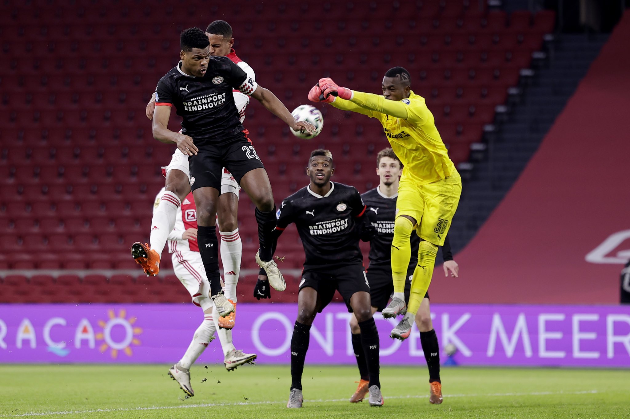 Голямото дерби на Нидерландия между Аякс и ПСВ Айндховен не излъчи победител. Двата тима се изправиха един срещу друг днес на "Йохан Кройф Арена" в Амстердам, а срещата завърши при резултат 2:2.