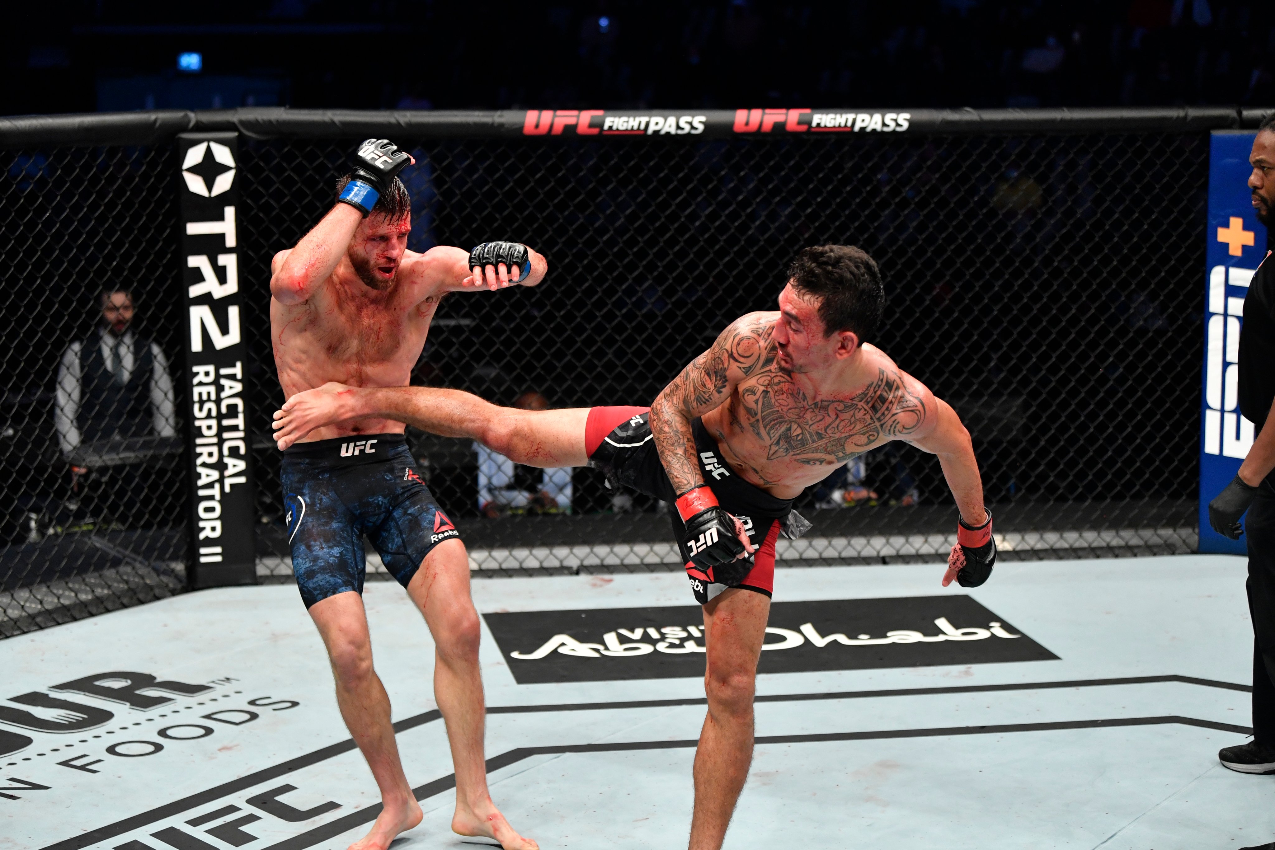 Халоуей доминираше във всеки рунд и на няколко пъти рефера спокойно можеше да спре битката. Макс успя да счупи носа на Кейтър, който показа огромно сърце и продължи да се бие, въпреки че едвам си стоеше на краката. Макс вкара в пъти повече удари от своя опонент, танцуваше, забавляваше се и крещеше, че е най-добрият боксьор в UFC.