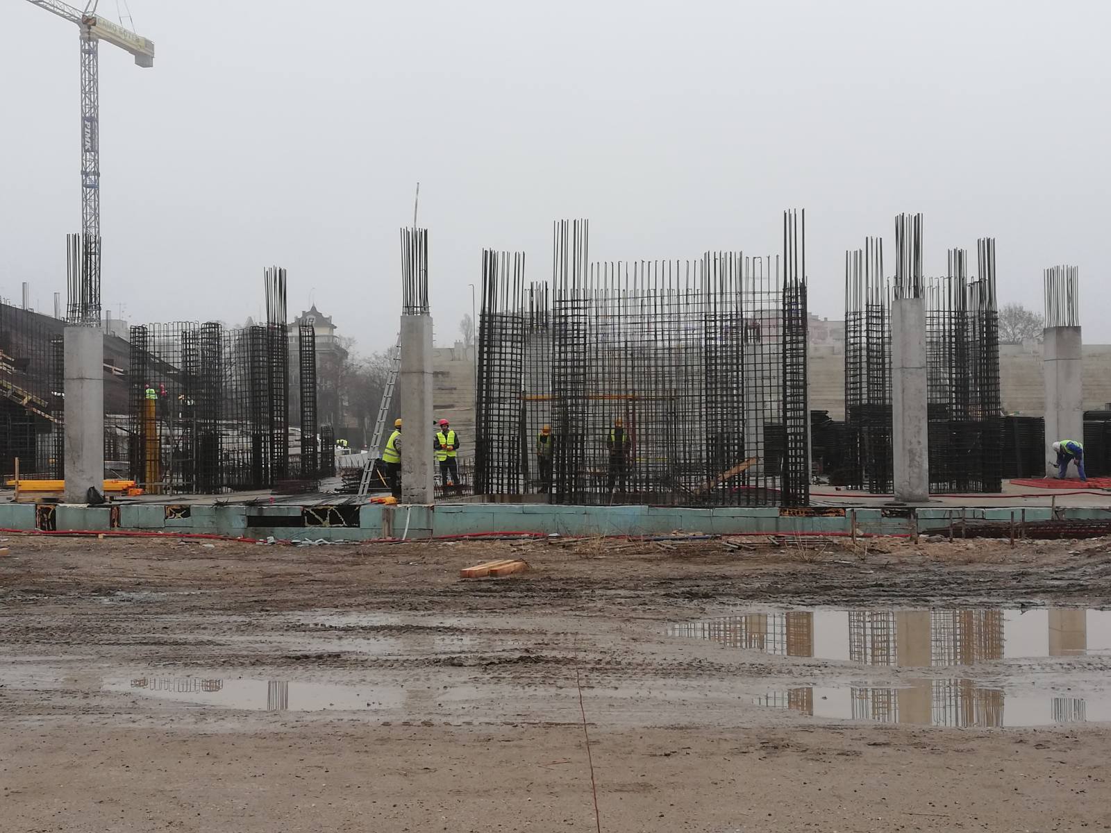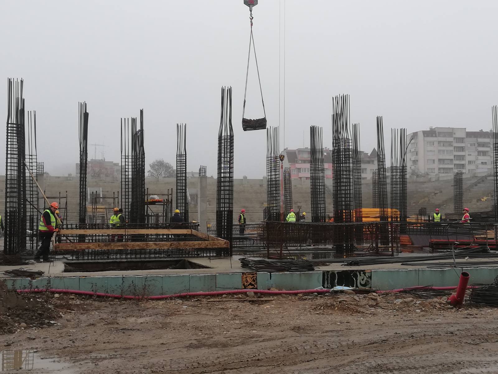 През последните дни работата по стадиона не е спирала и продължава с пълна сила, като дори падналият сняг в средата на миналата седмица не стопира строителните дейности.