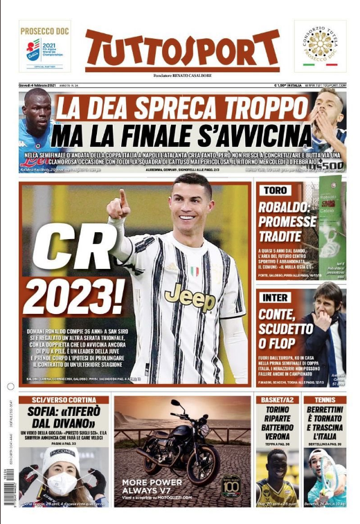 Ръководството на Ювентус е все по-близо до взимането на решение да предложи нов договор на Кристиано Роналдо, твърди “Тутоспорт” от първа страница на днешния си брой. Настоящият контракт на нападателя изтича през лятото на 2022 г., а идеята е за удължаване с още 12 месеца - до 2023 г.