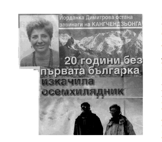 През октомври 1994 г. Йорданка Димитрова и Борислав Димитровасе отправят към третия по височина връх в света Кангчендзьонга. Борислав се отказва от изкачването поради замръзване, но Йорданка решава да продължи нагоре. Години по-късно италиански алпинисти откриват тялото й.