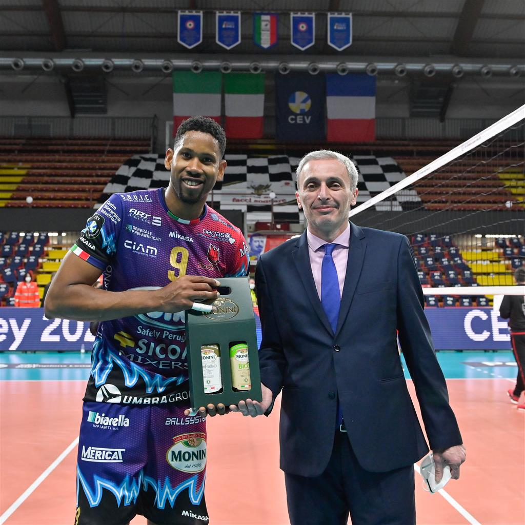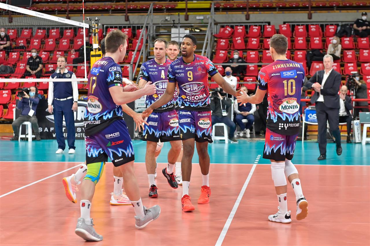 Отборът на Сър Сикома Монини (Перуджа) спечели категорично “италианското” дерби в Шампионската лига, след като се наложи у дома над Кучине Лубе (Чивитанова) с 3:0 (25:21, 25:18, 25:21) в мач от 5-ия кръг в Група В, който се игра в “Пала Бартон”.
