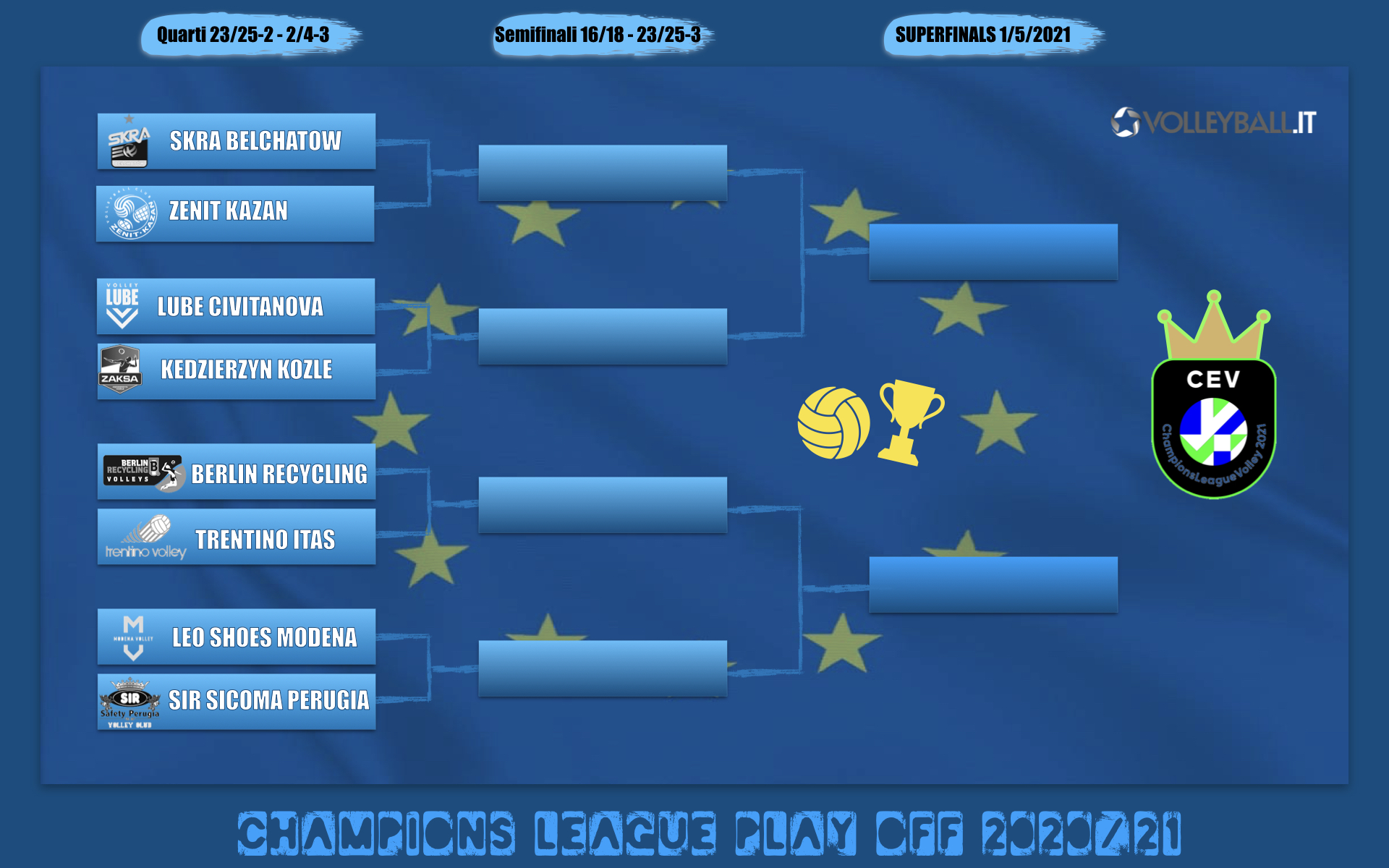 Вицешампионът на Русия Зенит (Казан) излиза срещу полския СКРА Белхатов в 1/4-финалите на волейболната Шампионска лига за мъже.