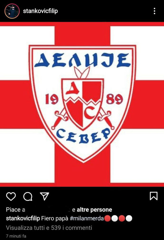 Междувременно, синът на интеристката легенда - Филип, предизвика полемика със свой пост в Инстаграм. Той качи снимка на една от фен групировките на "звездашите", под която написа: "Горд съм с теб, тате", но добави и обидното за "росонерите": #milanmerda. Малко след това обаче 19-годишният вратар от академията на "нерадзурите" изтри въпросната публикация.