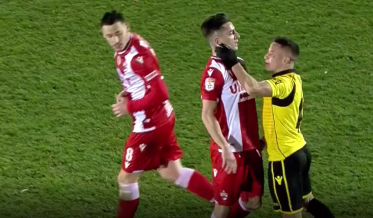 В 60-ата минута Иванов обаче бе провокиран от Стелиано Филип, който първо го изблъска в гръб, а после му каза нещо докато беше на земята. Българинът скочи на крака и го изблъска за гушата, а съдиите прецениха, че действието му заслужава директен червен картон.