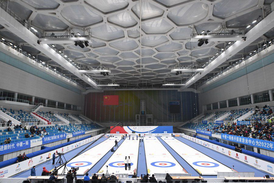 Състезание за смесени двойки по кърлинг се проведе в модерния "Воден куб", където върху басейна, който беше домакин на състезанията по плуване на олимпийските игри през 2008 година, беше поставена ледена повърхност.
