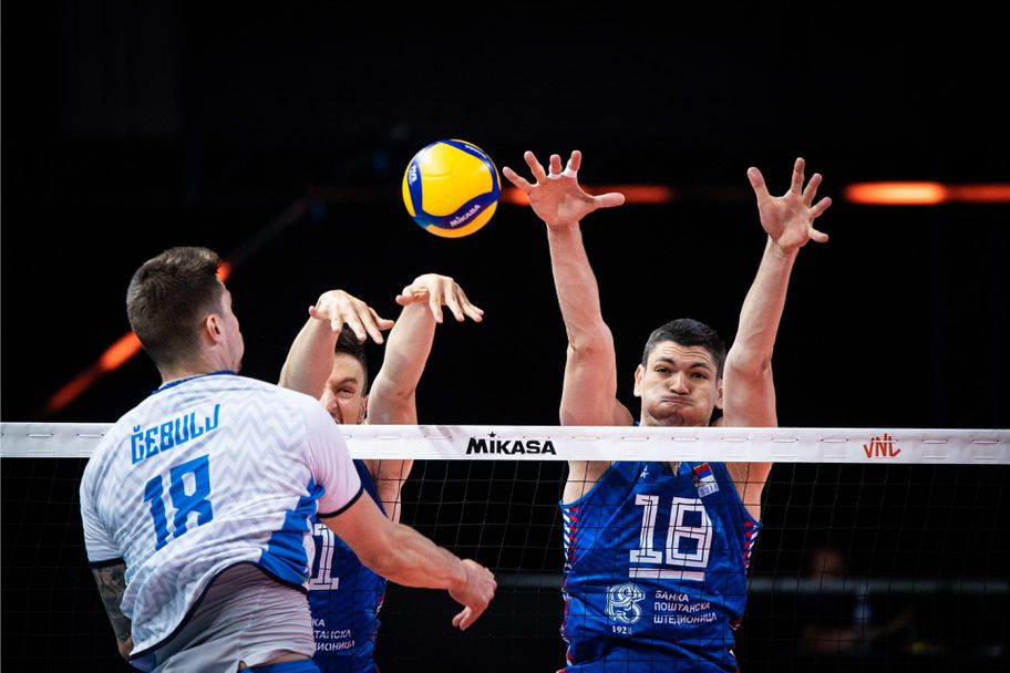 Европейският волейболен шампион Сърбия започна с победа в тазгодишната Лига на нациите, след като обърна и се наложи над дебютанта в турнира Словения с 3:1 (22:25, 25:18, 36:34, 25:18) в първата си среща в Римини.