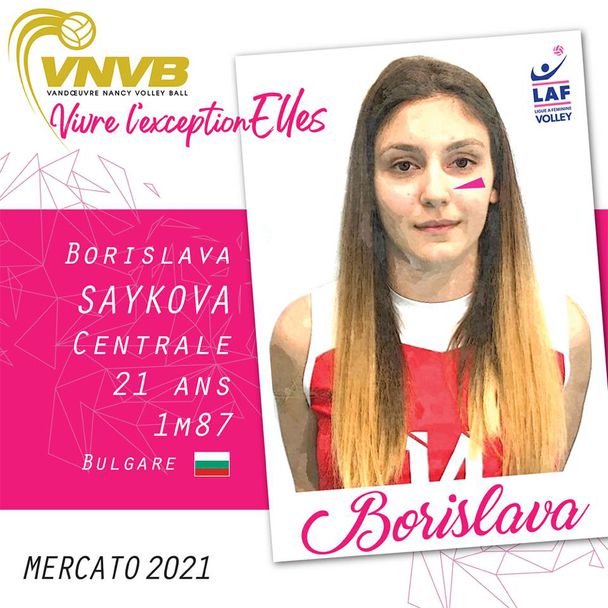 Младата националка Борислава Съйкова ще играе във Франция през новия сезон. Волейболистката, която играе на поста център, ще бъде част от Вандьовр Нанси, който е воден от Радослав Арсов. Съйкова прекара два сезона в румънския елит, в тима на Белор (Галац), като оглави класацията на центровете и завърши втора сред изпълнителките на сервис.