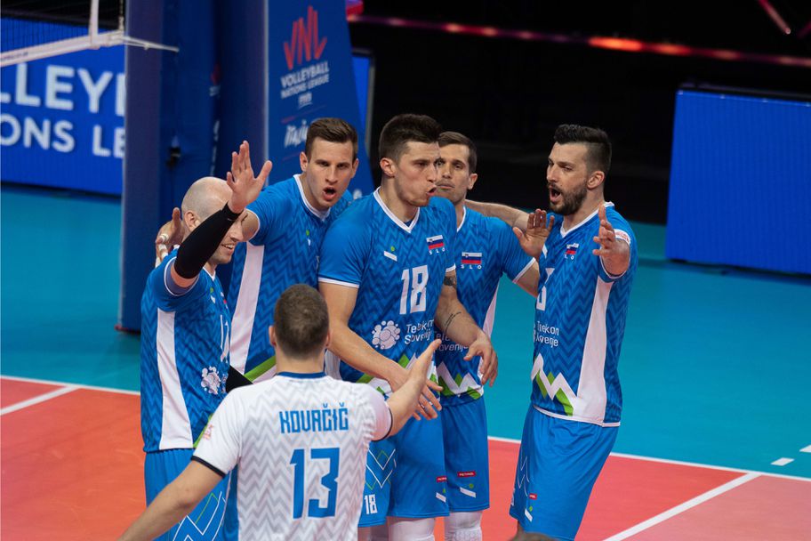 Националният волейболен отбор на Словения записа историческа първа победа в Лигата на нациите. Момчетата на селекционера Алберто Джулиани нанесоха втора поредна загуба на младия състав на домакините от Италия, след като ги надиграха с 3:0 (25:23, 25:19, 25:15) в мач от втория ден на турнира в Римини, игран тази вечер.
