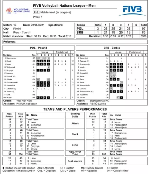 Най-резултатен бе Йоанди Леал с 13 точки (2 аса, 2 блокади), Алън Соуза добави 12 точки (1 ас, 1 блокада). Рикардо Лукарели приключи с 11 точки (1 блокада).