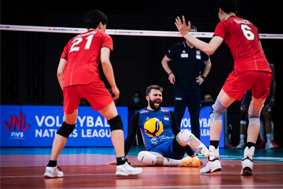 Европейските шампиони от Сърбия записаха трети успех във Волейболната лига на нациите, след като обърнаха сензацията на турнира Япония с 3:1 (18:25, 25:23, 25:22, 25:13) в мач от втория уикенд на турнира в Римини (Италия).