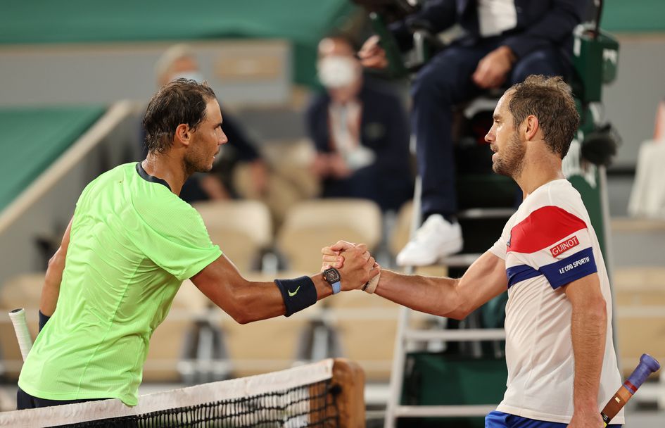 Рекордьорът по титли от "Ролан Гарос" Рафаел Надал преодоля с лекота втория кръг в тазгодишното издание на турнира. Навръх 35-ия си рожден ден испанецът отстрани Ришар Гаске в три сета - 6:0, 7:5, 6:2. Това беше общо 17-и мач помежду им на ниво ATP и в тях Гаске няма нито една победа. С неговото отпадане френското участие в Париж приключи и за първи път в историята в третия кръг няма да има представител на домакините.