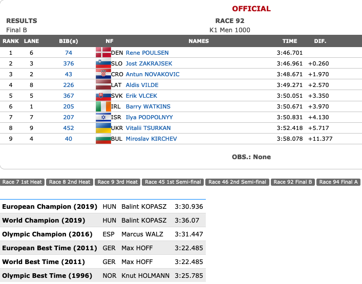 Състезателят на Клуб по кану-каяк „Георги Демирев“ (Русе) измина дистанцията от 1000 метра за 3:58.078 минути.