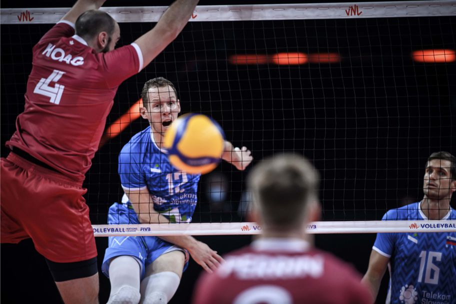 Европейските вицешампиони от Словения записаха 5-а победа в турнира на Волейболната лига на нациите, след като се справиха с Канада с 3:0 (25:22, 25:19, 25:22) в Римини.