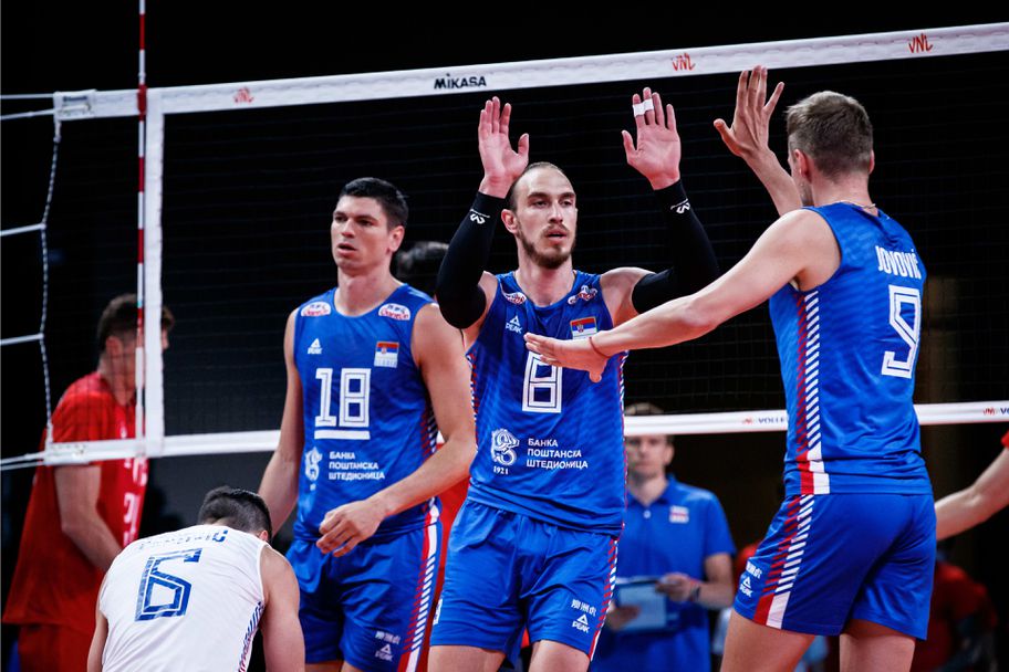 Победителите в Лигата на нациите от 2018 и 2019 година от Русия се поздравиха с 6-а победа в Лигата на нациите, двубоите от която се играят в Римини (Италия). "Сборная" се наложи над европейския шампион Сърбия с 3:1 (25:23, 25:22, 22:25, 25:21) в първа среща от четвъртия уикенд на надпреварата и 10-и кръг.