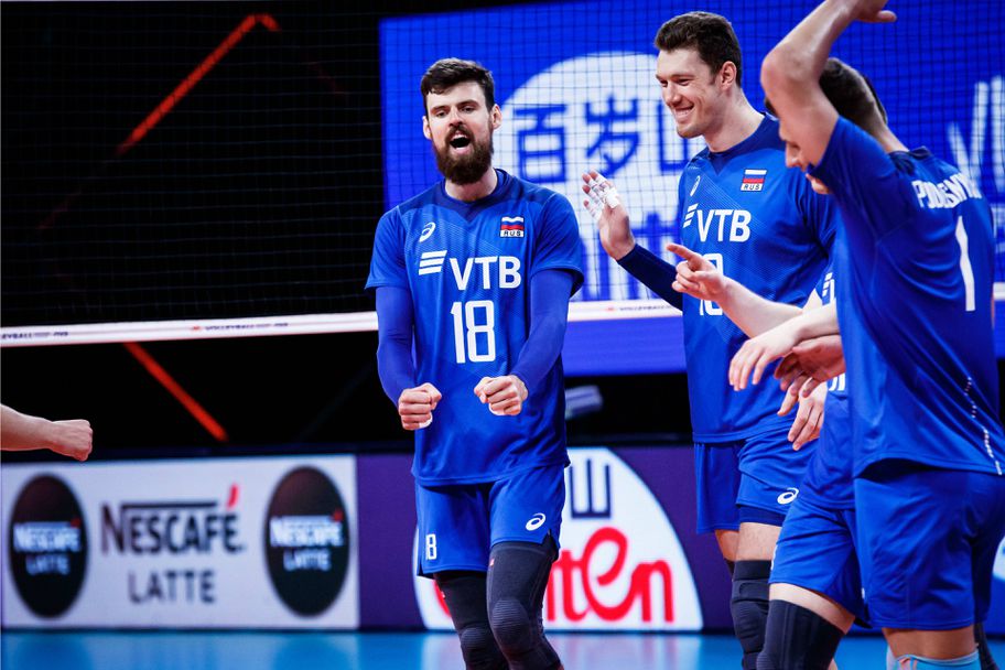 РУСИЯ: Игор Кобзар 4, Максим Михайлов 3, Егор Клюка 15, Ярослав Подлесних 12, Артьом Вольвич 9, Илияс Куркаев 8 – Валентин Голубев-либеро (Денис Богдан, Виктор Полетаев 5, Павел Панков 2, Дмитрий Мусэрский 10)