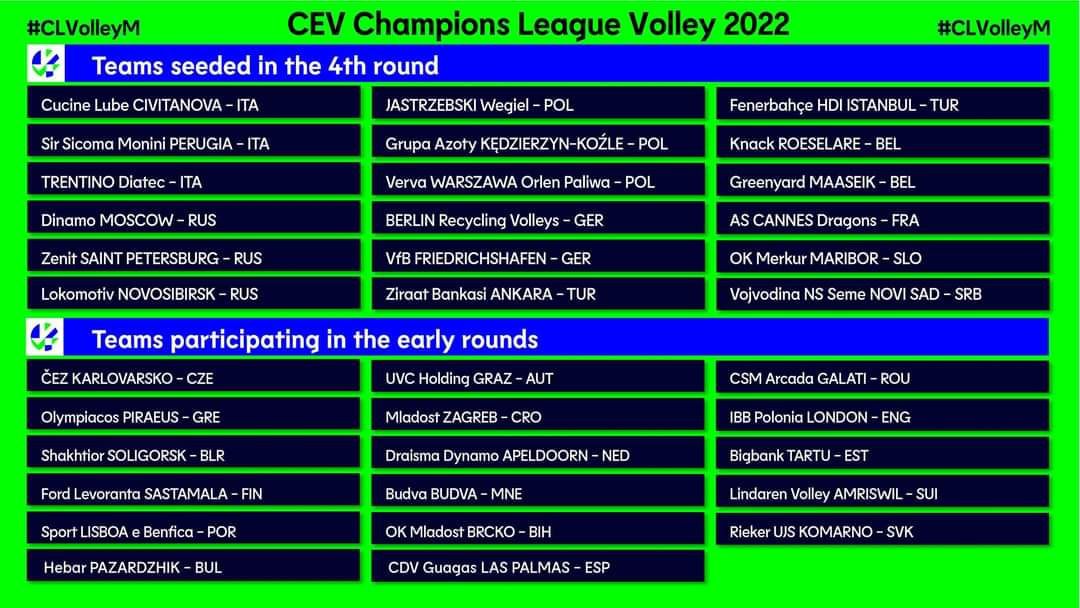 Сред тях има и дебютанти, като българският шампион Хебър (Пазарджик), естонският Бигбанк Тарту, испанският Гуагуас (Лас Палмас), словенският Меркур (Марибор), австрийският УВК Холдинг (Грац) и словашкият Рикер (Комарно).