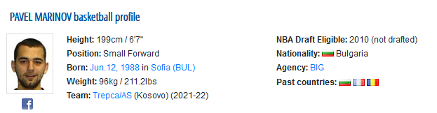 Един от най-добрите български играчи в последното десетилетие - Павел Маринов, отново ще заиграе в чужбина от следващия сезон. Авторитетният сайт eurobasket.com твърди, че бившият играч на Берое е преминал в косовския Трепча, където за старши треньор преди няколко седмици бе назначен Любомир Минчев. Така двамата ще продължат да работят заедно след сътрудничеството си при старозагорци миналата година.