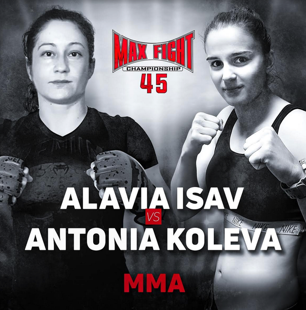Освен женския сблъсък в стил К1, „Максфайт“ дава възможност на още две представителки на нежния пол да се изправят една срещу друга, но във формат ММА. Медалистката от републикански и международни шампионати по самбо и джудо към ЦСКА София Антония Колева за първи път ще тества сили и умения във формат ММА. При дебюта си на професионалния ринг в този формат, 58-килограмовата състезателка ще се изправи срещу значително по-опитната си опонентка Алавия Исав, която в своята визитка изпъква с четири шампионски титли от турнири по граплинг и три пъти шампион по бразилско джиу джицу. Сблъсъкът между двете столичанки е в категория до 61кг.