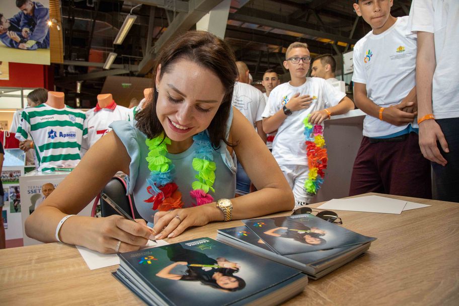 ”Златното момиче” на българската гимнастика се срещна и разговаря с 30 младежи в Музея на спорта, който бе открит в комплекса неотдавна. Заедно с нея бе и баскетболният национал Йордан Минчев, който от следващия сезон ще се подвизава в унгарското първенство.
