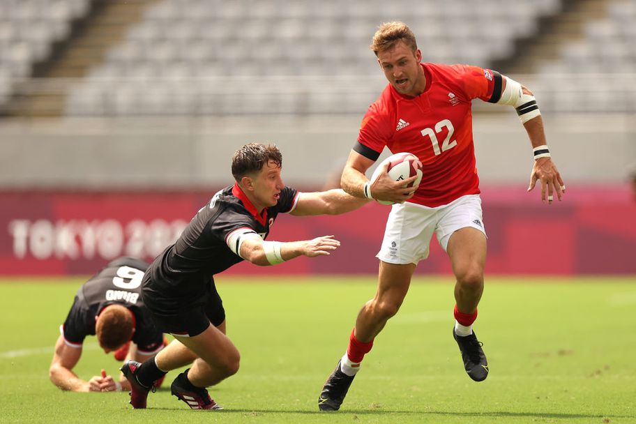 Следобед британците разгромиха с 34:0 Япония с трай на Дан Биби, Том Мичъл, Хари Гловър, Бен Харис, Итън Уодълтън и Алекс Дейвис. Благодарение на чистата 0 в защита, олимпийските вицешампиони оглавиха оспорваната група "Б" с 58-0 точкова разлика. Фиджи е на второто място с 52:33, а Канада и Япония са съответно трети и четвърти. Първите два отбора и два от най-добрите трети в трите групи се класират на четвъртфиналите.