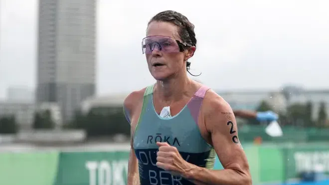 33-годишната Дъфи триумфира в надпреварата по триатлон за жени на Игрите в Токио 2020.
