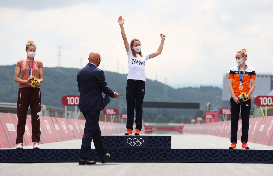 Нидерландката Анемийк ван Флютен спечели златото в индивидуалното бягане по часовник (жени) и прибави втори медал от Игрите в Токио след среброто в общия старт в колоезденето на шосе.