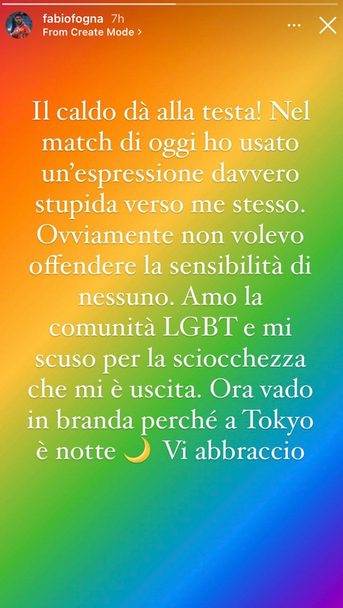 Италианският тенисист Фабио Фонини се извини, че е направил хомофобска забележка на корта по време на Олимпийските игри в Токио.