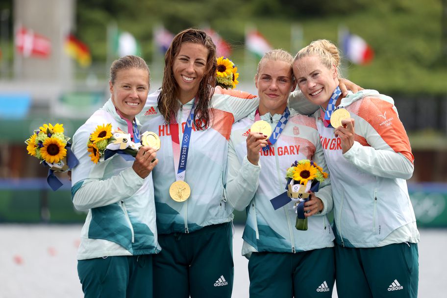 Унгария спечели титлата на четворка каяк 500 метра за жени в надпреварата по кану-каяк на олимпийските игри в Токио.