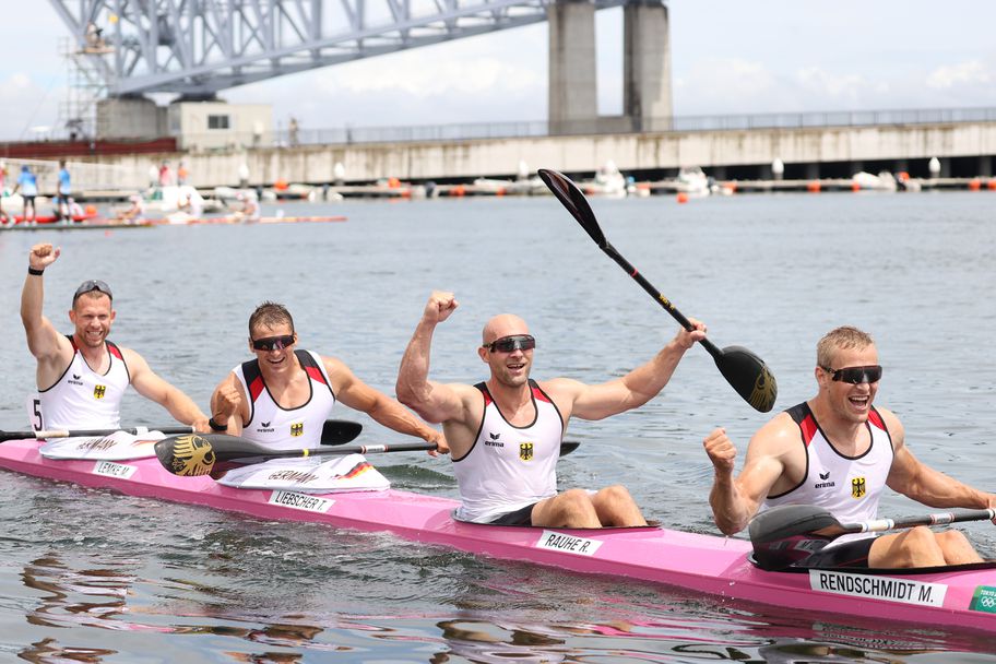 Германците Макс Рендшмид, Роналд Рауе, Том Либшер и Макс Лемке спечелиха олимпийската титла в четворката каяк на 500 метра.